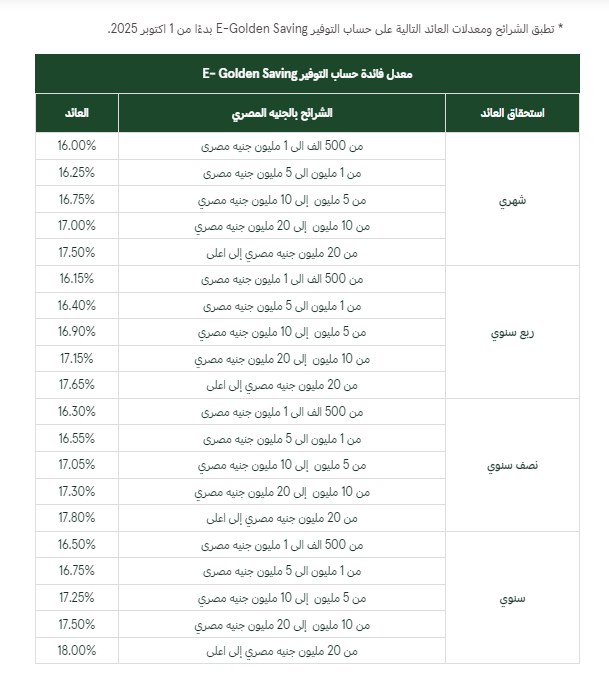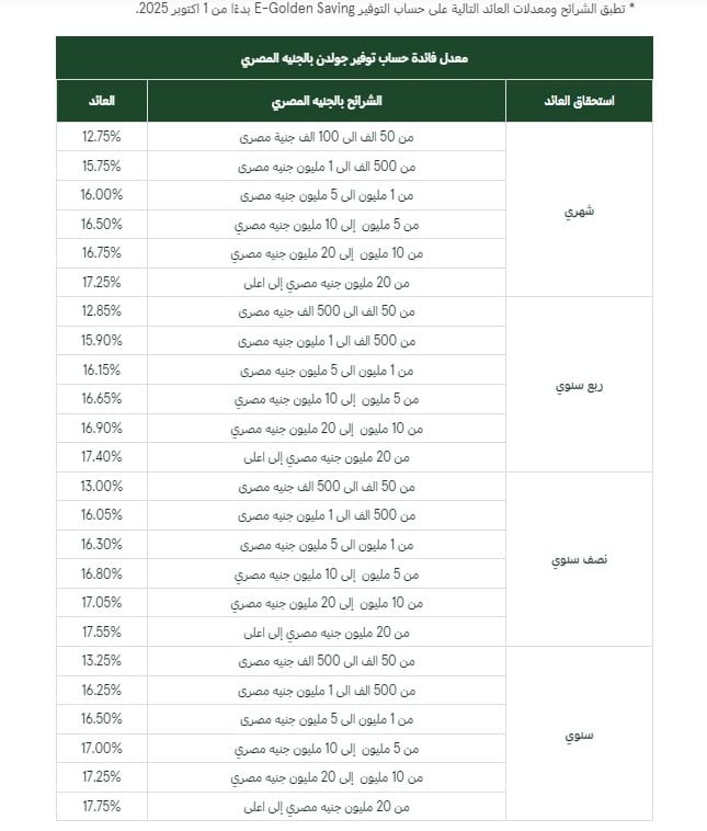 وفيما يلي نستعرض تفاصيل العائد الجديد علي حسابات التوفير: