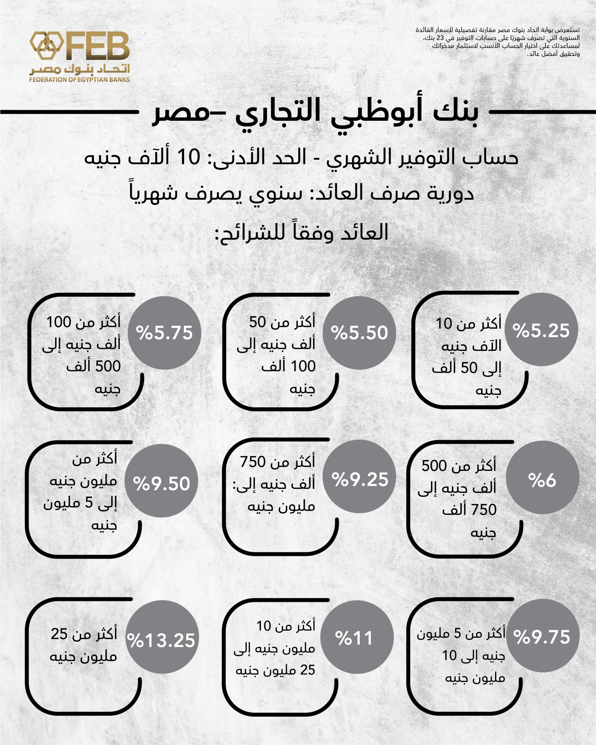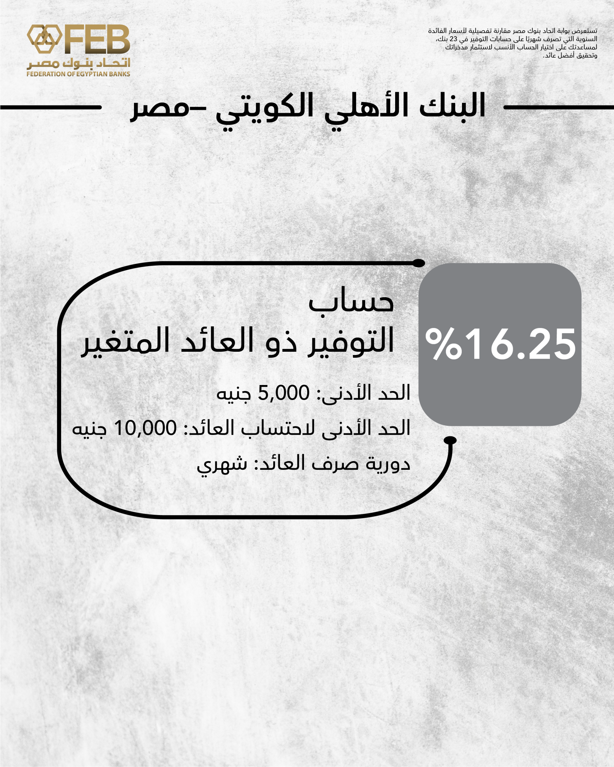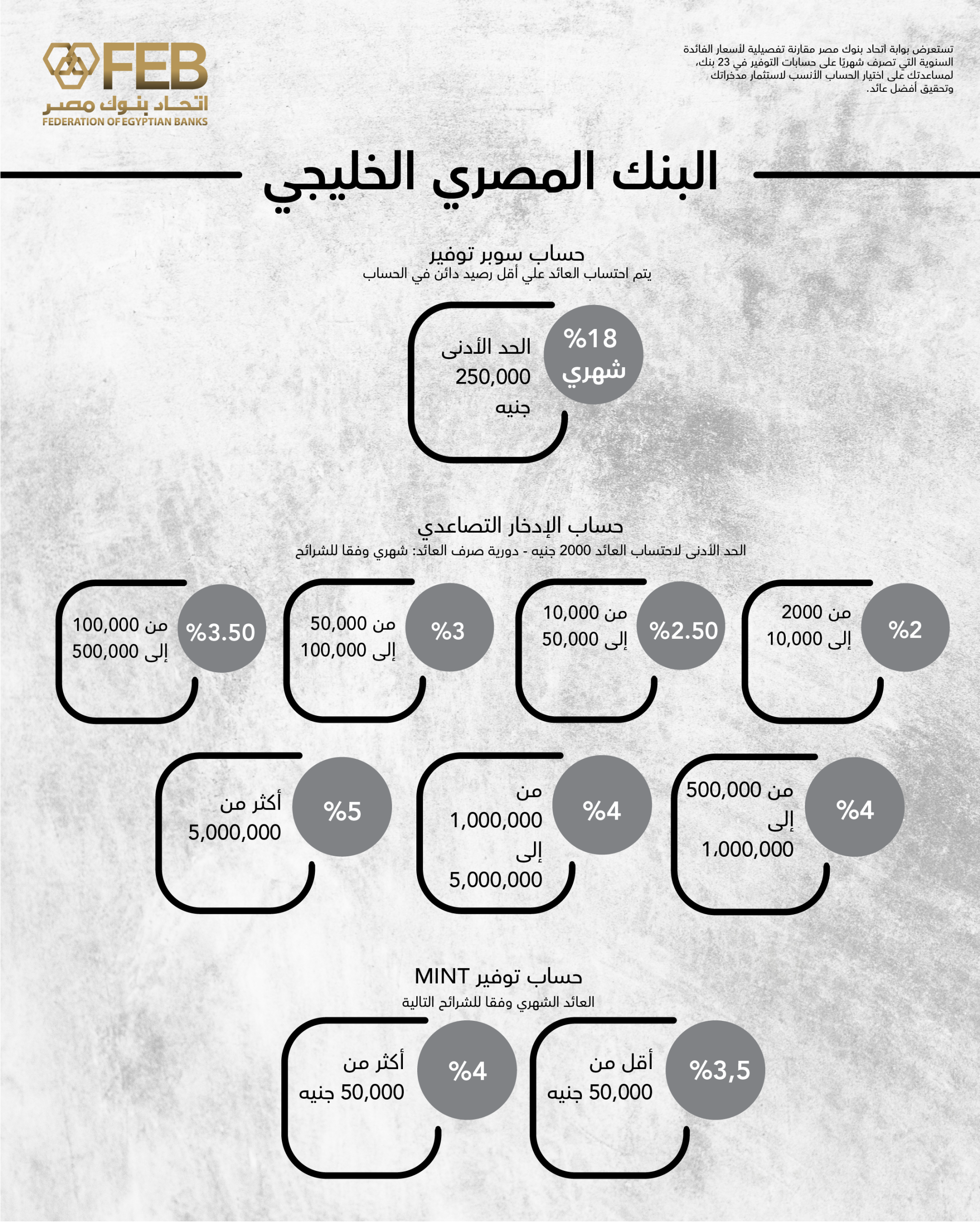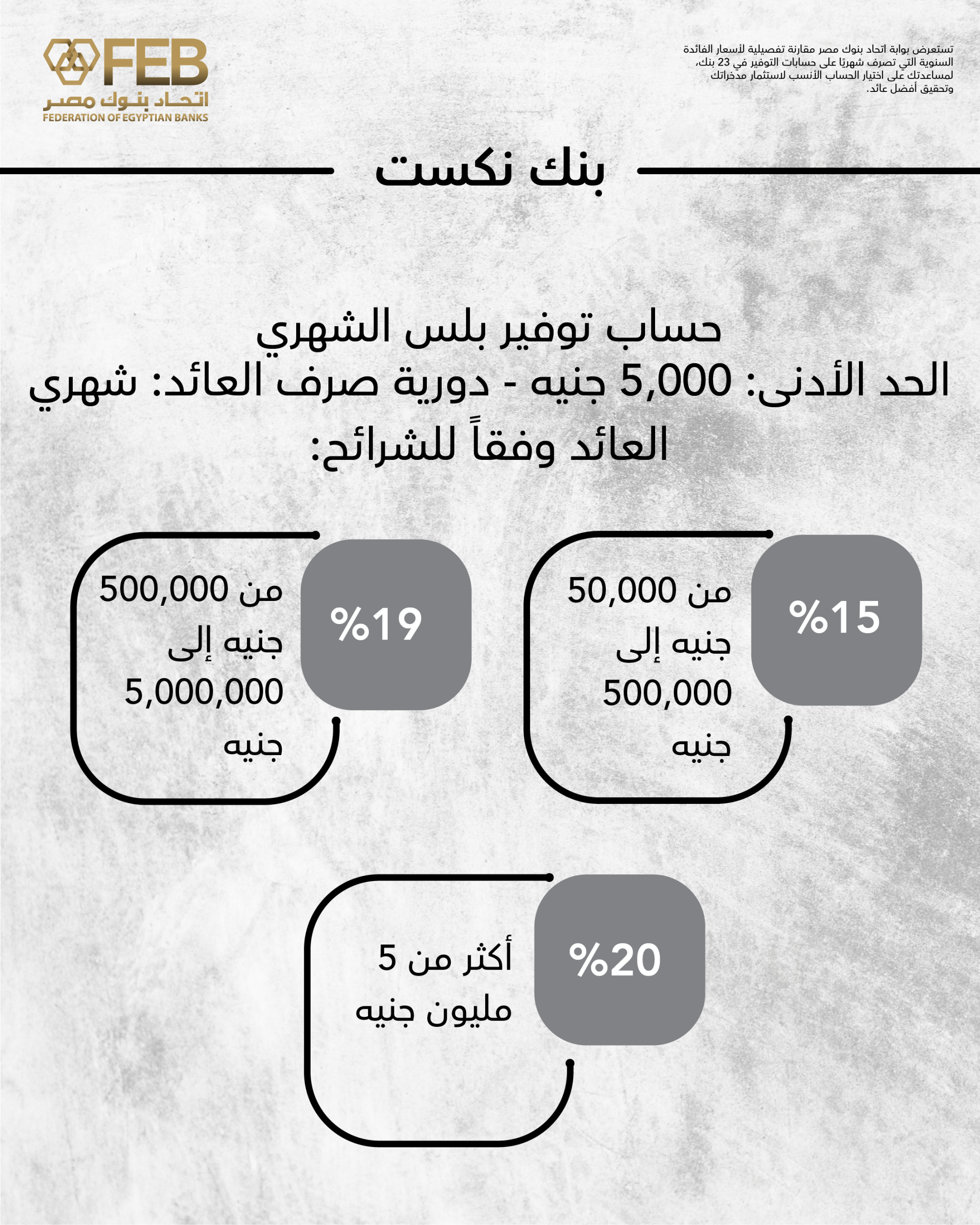 تستعرض بوابة اتحاد بنوك مصر مقارنة تفصيلية لأسعار الفائدة السنوية التي تصرف شهريًا على حسابات التوفير في 23 بنك، لمساعدتك على اختيار الحساب الأنسب لاستثمار مدخراتك وتحقيق أفضل عائد.