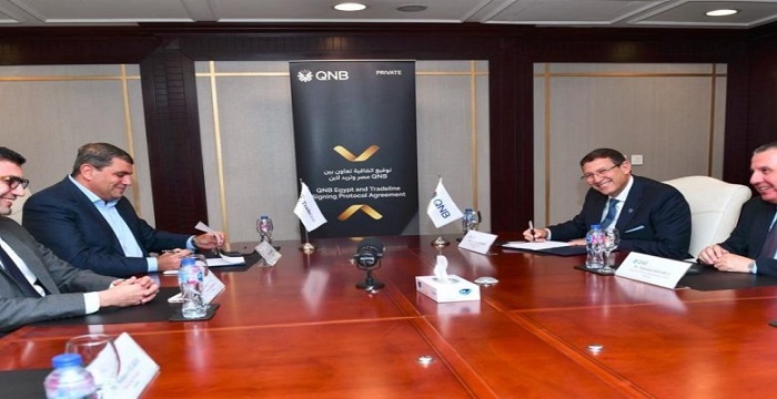 وقام بتوقيع بروتوكول التعاون محمد بدير الرئيس التنفيذي لـ QNB مصر، وأيمن مدحت رئيس مجلس إدارة شركة تريد لاين ستورز، بحضور عدد من المسؤولين من الجانبين.