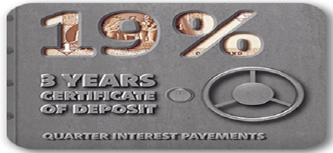 المزايا: • مدة الشهادة 3 سنوات • اسعار الفائدة تختلف باختلاف دورية العائد شهريا 18.75% ربع سنوى 19% • يتم إضافة الفائدة تلقائيا الى حساب التوفير او الجارى • يسمح باسترداد قيمة الشهادة بعد 6 أشهر من إصدار الشهادة • الحصول على تسهيلات السحب على المكشوف تصل إلى 90٪ من مبلغ الشهادة