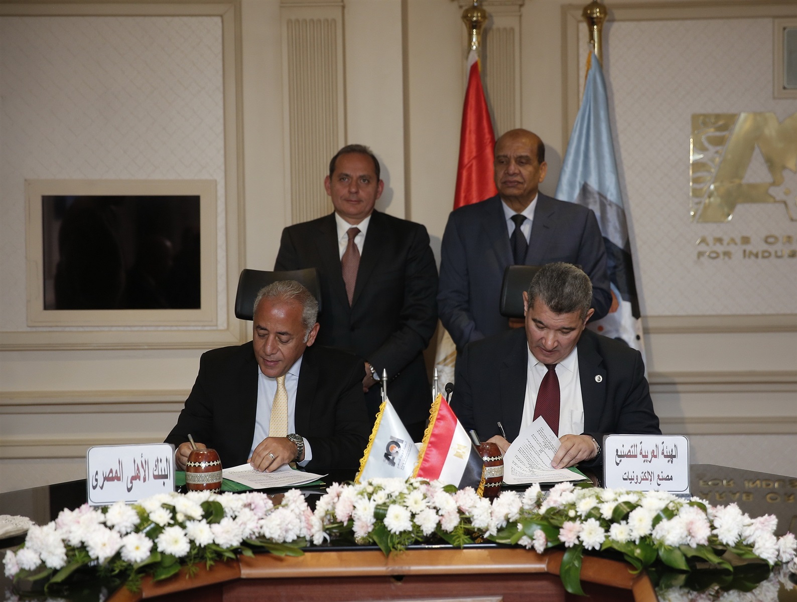 وقام بالتوقيع حسام الحجار، رئيس مجموعة الدعم الإداري بالبنك الأهلي المصري والمهندس عبد المحسن عبد الصادق، رئيس مصنع الالكترونيات التابع للهيئة العربية للتصنيع.