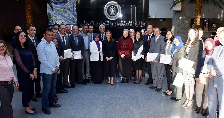 وقامت “نصر” بتسليمهم شهادة تميز وسط احتفال بحضور منى زوبع، الرئيس التنفيذي للهيئة العامة للاستثمار والمناطق الحرة، وعلا القبرصي، نائب الرئيس التنفيذي للهيئة، وياسر عباس، رئيس قطاع خدمات المستثمرين، وزملائهم العاملين في المركز، وقدمت الوزيرة الشكر والتقدير لهم على كافة مجهوداتهم وأدائهم المتميز خلال الفترة الماضية في تسهيل كافة الإجراءات على المستثمرين.