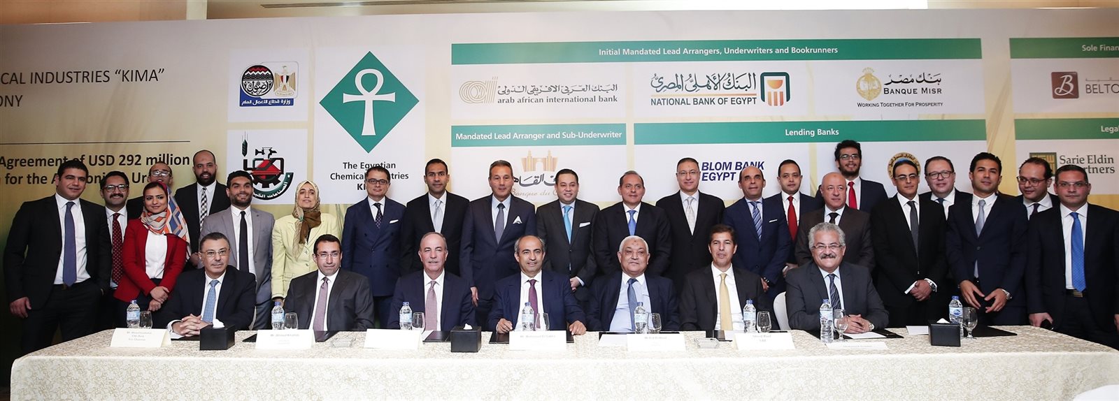 تم توقيع عقد التمويل تحت رعاية خالد بدوى، وزير قطاع الأعمال العام وبحضور عماد الدين مصطفى، رئيس مجلس إدارة الشركة القابضة للصناعات الكيماوية، والمهندس عيد الحوت، رئيس مجلس إدارة شركة الصناعات الكيماوية المصرية ” كيما”، وهشام عكاشه، رئيس مجلس ادارة البنك الأهلي المصري، ويحيى ابو الفتوح، نائب رئيس مجلس ادارة البنك الاهلي المصري، ومحمد الأتربي، رئيس مجلس ادارة بنك مصر، وعاكف المغربي، نائب رئيس بنك مصر، وطارق فايد، رئيس بنك القاهرة، وعمرو الشافعي، نائب رئيس بنك القاهرة، وأحمد عمرو محمد جادالله، نائب رئيس البنك العقاري المصري العربي، واحمد خطاب، مساعد العضو المنتدب للائتمان والتسويق ببنك بلوم مصر، وشريف رياض، رئيس مجموعة الائتمان المصرفي للشركات والقروض المشتركة بالبنك الاهلي المصري، ومحمود السقا، رئيس قطاع بنوك الاستثمار وتمويل الشركات بالبنك العربي الافريقي الدولي، والساده أعضاء فرق العمل من القطاعات التنفيذية بالشركتين والبنوك الممولة.