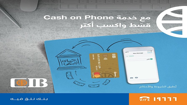 1.3K. يقدم البنك التجاري الدولي – مصر CIB، لعملائه، حاملي بطاقات البنك الائتمانية، خدمة Cash on Phone، والتي تمكّنهم من تحويل أي مبلغ من رصيد البطاقات لحساباتهم الشخصية، مع مرونة في السداد على أقساط شهرية متساوية.