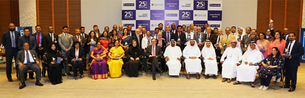 261. قام الشيخ أحمد بن سعيد آل مكتوم، رئيس مجلس إدارة مجموعة بنك الإمارات دبي الوطني، بتكريم 60 موظفاً وموظفة ممن أمضوا 25 عاماً متواصلة في خدمة المجموعة، وجاء التكريم خلال حفل خاص أقيم بالمقر الرئيسي للبنك في منطقة ديرة.