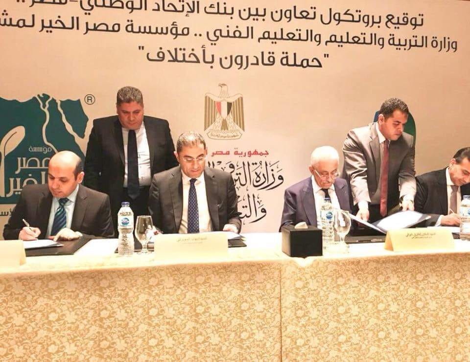293. قام بنك الاتحاد الوطنى – مصر، ومؤسسة مصر الخير، بتوقيع بروتوكول تعاون لمساعدة ذوي الإعاقة، سعيا لإدراجهم في جميع مدارس جمهورية مصر العربيـة، وذلك بحصول طارق شوقي، وزير التربية والتعليم، وإيهاب السويركي، العضو المنتدب لبنك الاتحاد الوطني – مصر.