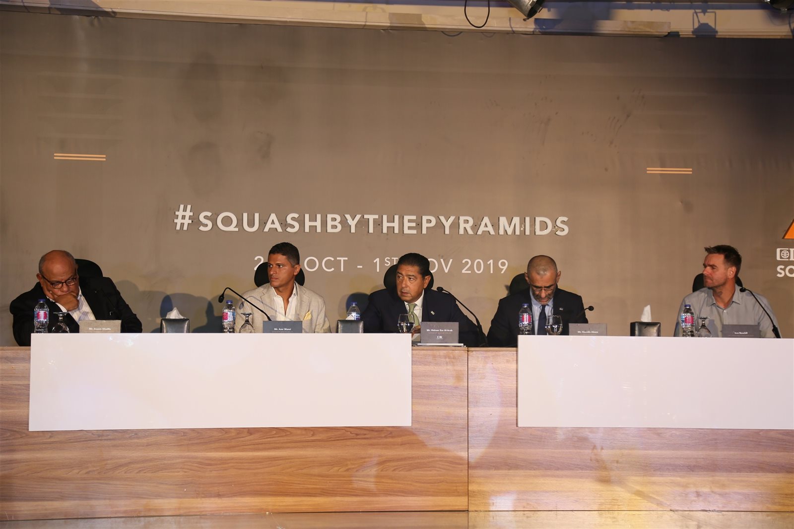 ويحضر المؤتمر كل من الدكتور أشرف صبحي، وزير الشباب والرياضة، وهشام عز العرب، رئيس مجلس الإدارة والعضو المنتدب للبنك التجاري الدولي CIB، وحسين أباظة، الرئيس التنفيذي وعضو مجلس إدارة البنك التجاري الدولي CIB، وليي بيتشيل، رئيس عمليات الاتحاد الدولي لمحترفين الاسكواش، وعاصم خليفة، رئيس الاتحاد المصري للاسكواش، والمهندس أحمد يوسف، رئيس الهيئة المصرية العامة للتنشيط السياحي، وعمرو منسي، مدير البطولة والمؤسس والرئيس التنفيذي لشركة IEVENTS، وعلي فرج، المصنف الأول عالميًا، ورنيم الليلي، المصنفة الأولي عالميًا.