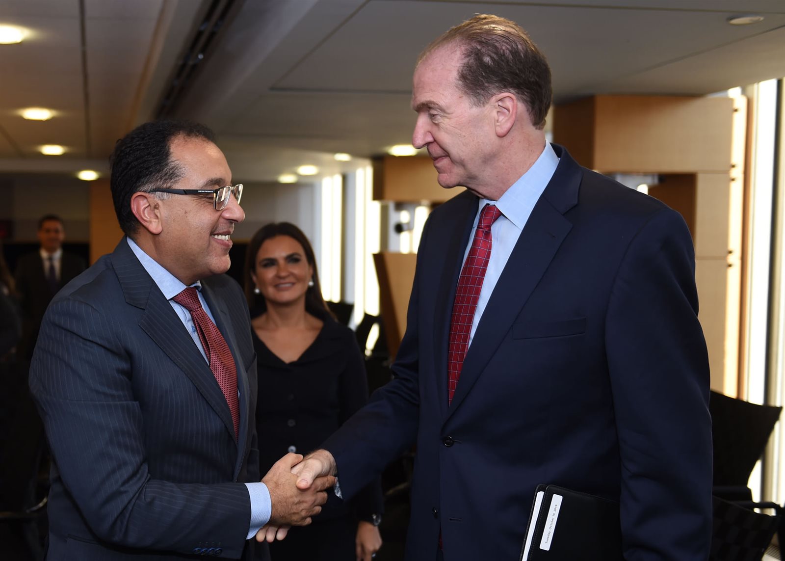 التقى الدكتور مصطفى مدبولي، رئيس مجلس الوزراء، خلال زيارته واشنطن، ديفيد مالباس رئيس البنك الدولي، وحضر اللقاء وزراء الاستثمار والتعاون الدولي، والبترول والثروة المعدنية، والمالية، والتجارة والصناعة، وسفير مصر فى الولايات المتحدة.