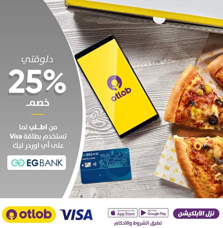 أعلن البنك المصري الخليجي EGBANK، عبر صفحته الرسمية على موقع التواصل الاجتماعي “فيسبوك”، لعملائه عن فرصة الحصول على خصم 25% بحد أقصى 25 جنيه من تطبيق Otlob، وذلك على أي طلب من خلال التطبيق عند استخدام بطاقات Visa، علما بأن العرض سار حتى 16 أكتوبر أو نفاذ الكمية.
