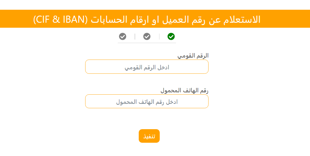 أدخِل الرقم القومي وكذلك رقم الهاتف محمول المطابق للرقم المسجل لدى البنك.