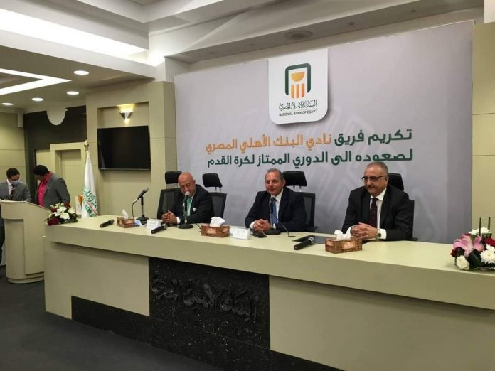 . كرم البنك الأهلي المصري، لاعبي فريق نادي البنك الأهلي، اليوم، الأربعاء، والذي يقيمه البنك لتكريم اللاعبين بعد صعودهم وتأهلهم للدوري الممتاز، ويعد هذا الصعود هو الأول لنادي البنك الأهلي في تاريخه.