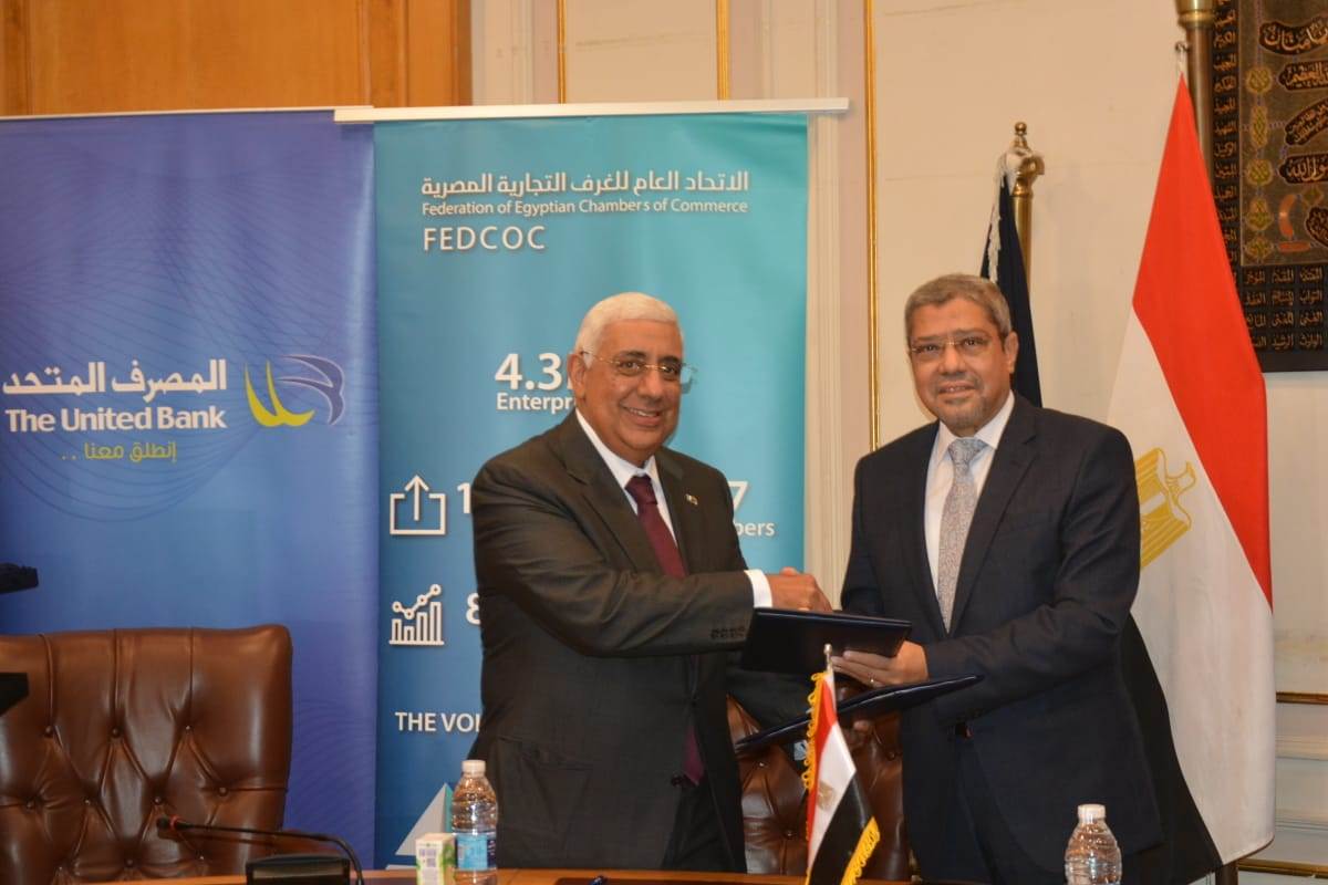 وقع البروتوكول المهندس إبراهيم محمود العربي – رئيس الاتحاد العام للغرف التجارية المصرية واشرف القاضي – رئيس مجلس إدارة المصرف المتحد. بحضور فرج عبد الحميد – نائب رئيس المصرف المتحد ونيفين كشميري – نائب العضو المنتدب لقطاعات الأعمال ومحمد شوقي – رئيس قطاع التمويل التجاري والمناطق الإقليمية ونخبة من فريق عمل المصرف المتحد.