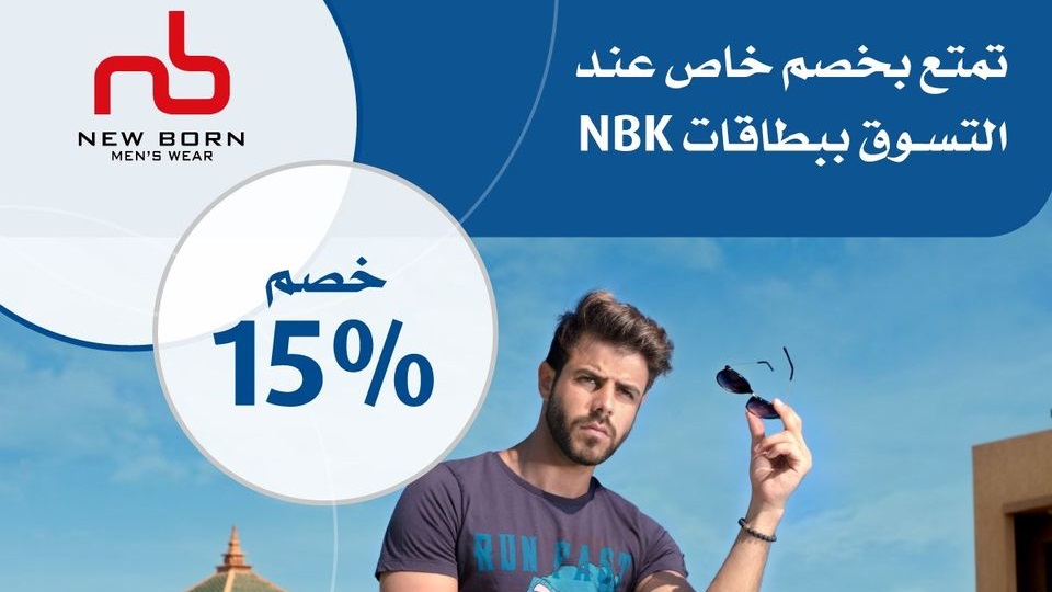 أعلن بنك الكويت الوطني- مصر، عبر صفحته الرسمية على موقع التواصل الاجتماعي “فيس بوك”، لعملائه عن إمكانية الحصول على خصم 15% من “New Born” للملابس الرجالي، وذلك عند استخدام بطاقات “الكويت الوطني”.