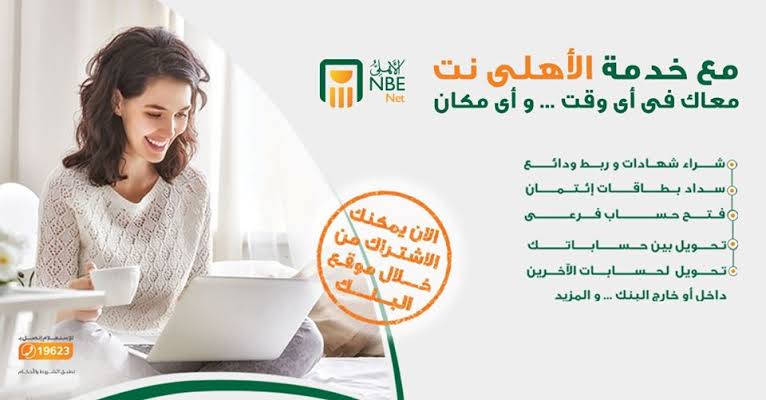 يمكنك التوجه إلى الفرع واستيفاء نموذج طلب الاشتراك في خدمة الأهلي نت والحصول على الرقم التعريفي للخدمة “NBE ID”.