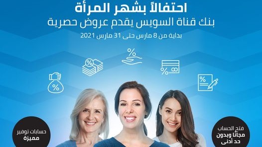 أعلن بنك قناة السويس، عبر صفحته الرسمية على موقع التواصل الاجتماعي “فيس بوك”، لعملائه السيدات، عن تقديم عروض حصرية مثل إمكانية فتح حساب مجانًا بدون حد أدنى، والتمتع بحسابات التوفير بخصائص مميزة، بالإضافة إلى إصدار بطاقة الخصم المباشر ميزة مجانًا، والاشتراك في خدمات الإنترنت البنكي والمحفظة الإلكترونية مجانًا.