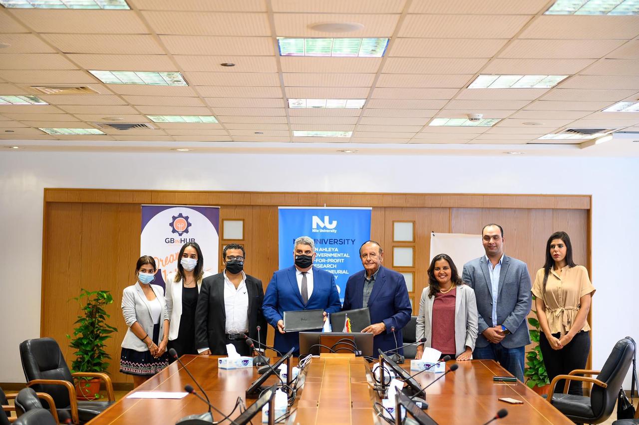 حضر التوقيع، الدكتور طارق خليل رئيس جامعة النيل الأهلية، وجورج صدقي رئيس قطاع الموارد البشرية بمجموعة جي بي أوتو، والدكتورة هبة لبيب المدير التنفيذي لمبادرة رواد النيل والدكتور محمد عباس مدير برنامج حاضنات الأعمال بمبادرة رواد النيل.