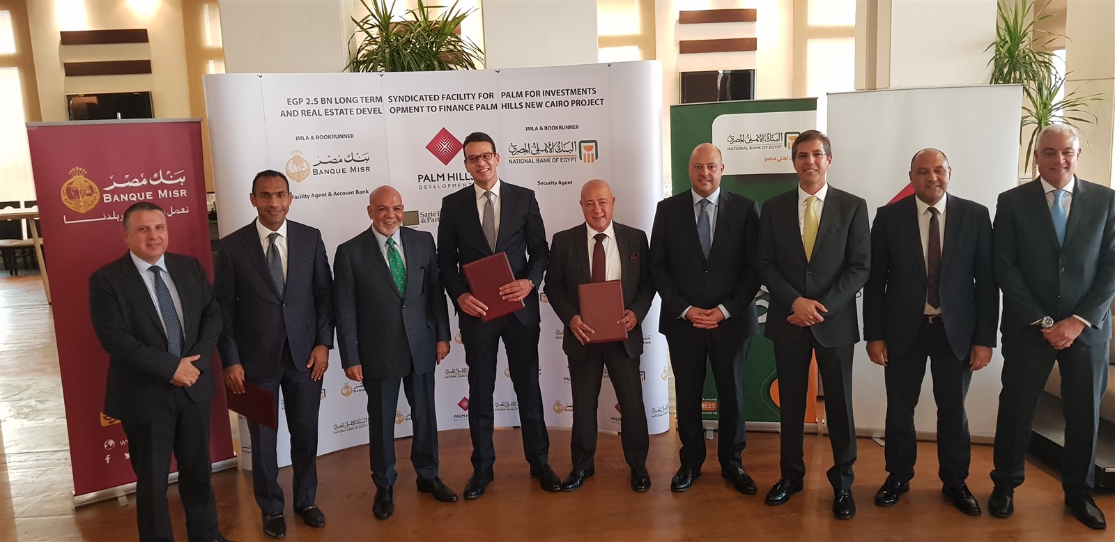 حضر التوقيع عاكف المغربي نائب رئيس مجلس إدارة بنك مصر، ويحيى أبو الفتوح نائب رئيس مجلس إدارة البنك الأهلي المصري وطارق الطنطاوي وحازم بدران – الرؤساء التنفيذين وأعضاء مجلس إدارة المنتدبين في شركة بالم هيلز للتعمير، وفرق العمل من البنكين والشركة.