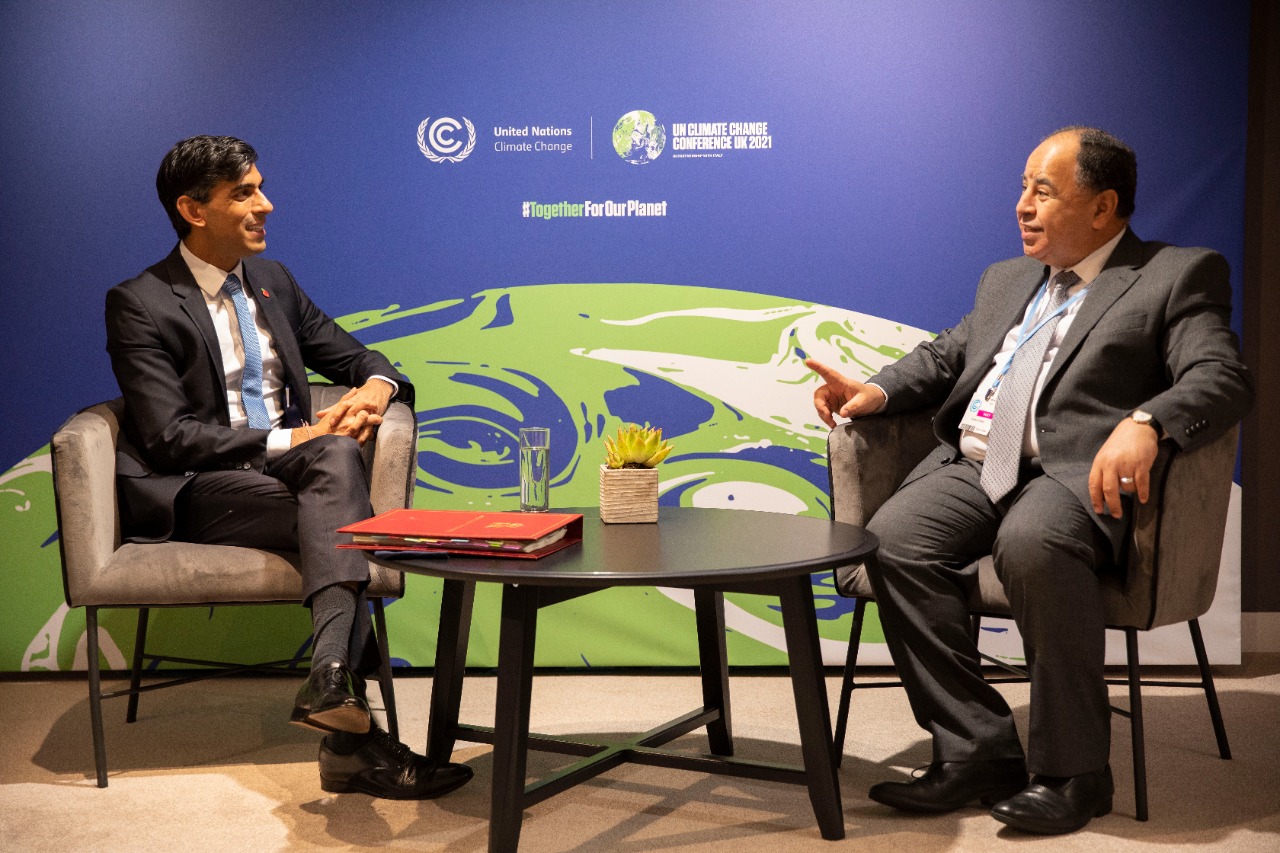 عقد الدكتور محمد معيط وزير المالية، لقاءً ثنائيًا مع ريشي سوناك وزير الخزانة البريطانى، على هامش مشاركته فى «يوم التمويل» بمؤتمر «الأمم المتحدة للمناخ» بجلاسجو.
