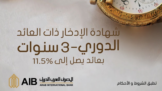 يُقدم المصرف العربي الدولي لعملائه شهادة الإيداع ذات العائد الدوري لمدة 3 سنوات، وبعائد يصل إلى 11.5% سنويًا، وبحد أدنى 5000 جنيه للشهادة، وبدوريات صرف متنوعة (شهري – ربع سنوي – نصف سنوي – سنوي).
