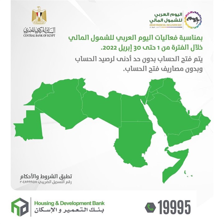 وأشار البنك، عبر صفحته الرسمية على موقع التواصل الاجتماعي “فيس بوك”، أن ذلك بمناسبة اليوم العربي للشمول المالي، وطبقًا لمبادرة البنك المركزي المصري الخاصة بالشمول المالي.