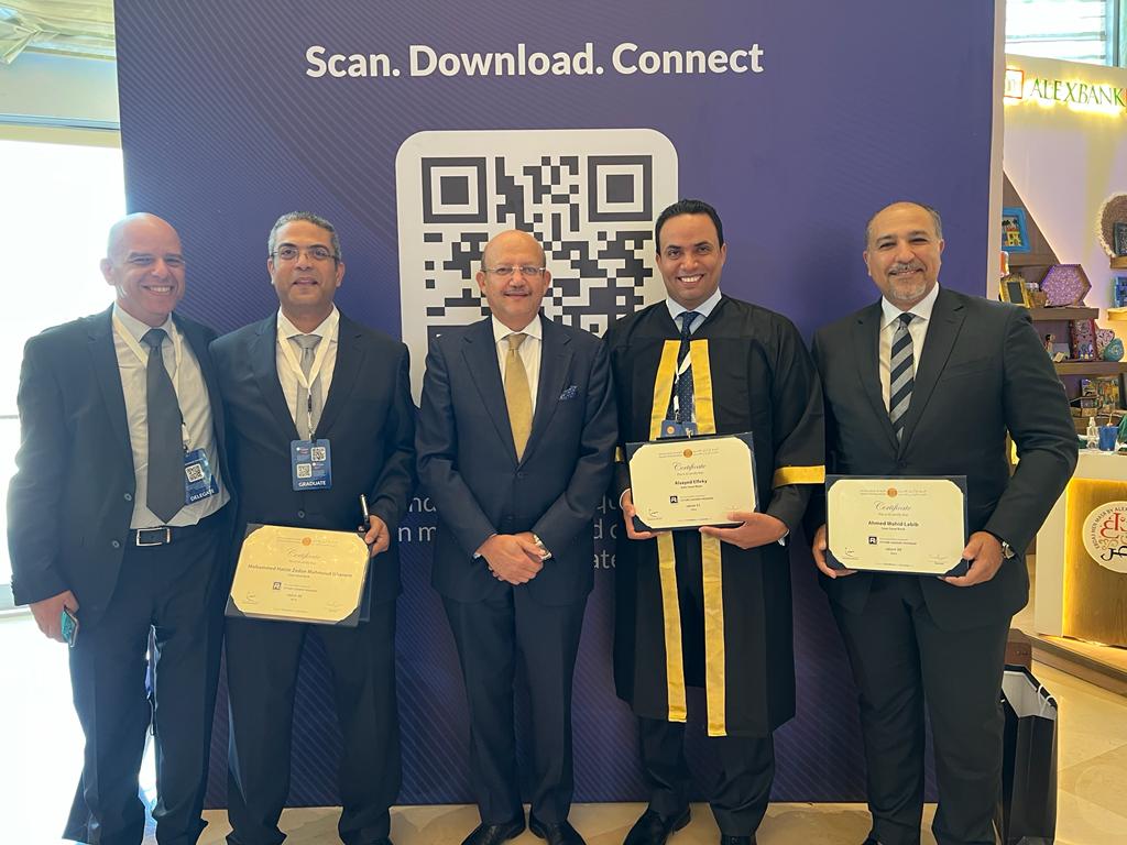 ومنح المعهد المصرفي كلاً من السيد الفقي، نائب رئيس قطاع تمويل الشركات والخدمات الاستثمارية، ومحمد زيدان، نائب مدير عام تنفيذي إدارة المشروعات الصغيرة والمتوسطة، وأحمد لبيب، مدير عام بإدارة المشروعات الصغيرة والمتوسطة، شهادة إتمام برنامج إعداد قيادات المستقبل من المعهد المصرفي المصري.