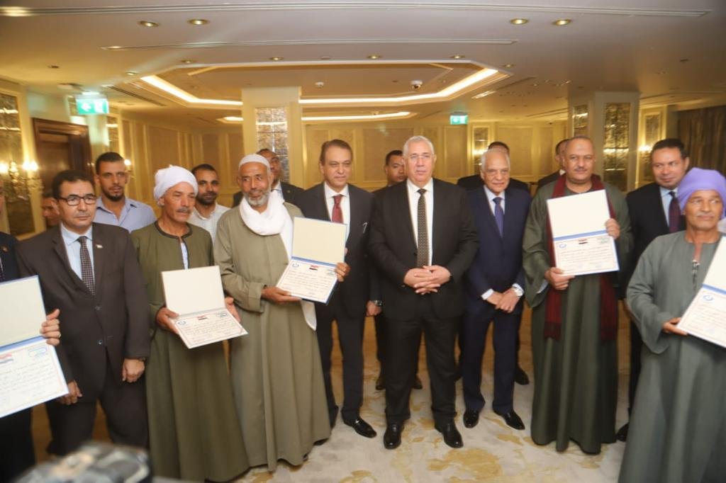 وضمن المكرمين المزارعين: أحمد عبد الحافظ محمود من كفر صقر بمحافظة الشرقية، أحمد شحاتة محمود من البحيرة، راضي شفيق محمود بالدقهلية، محمد عبد الله إبراهيم- النوبارية، أحمد محمد أبو صرة بالغربية، عبد ربه فتحي بالوادي الجديد، أحمد صبحي عبد النعيم بمحافظة المنيا، صموئيل بأسيوط، أحمد السيد محمد ضيف الله بمركز ساقلتة بمحافظة سوهاج”.