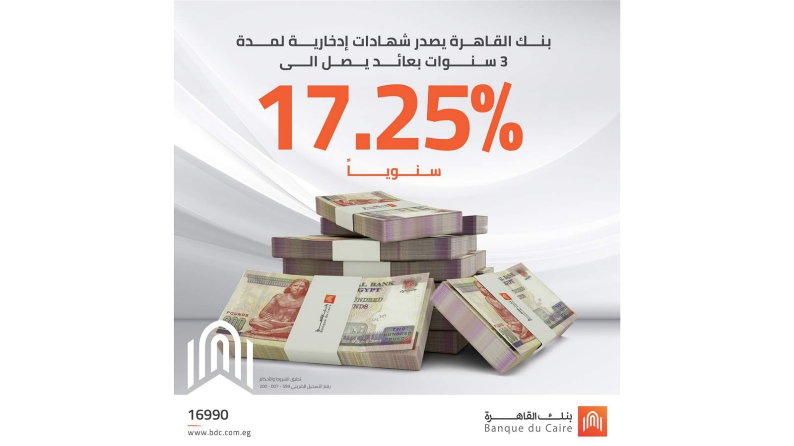 قرر بنك القاهرة إصدار شهادات بريمو جولد لمدة 3 سنوات بعائد يصل إلى 17.25%، وبدوريات صرف سنويا.
