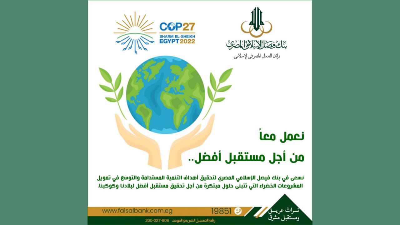 كما يستعد البنك لاطلاق منتج تمويل شخصي أخضر لتمويل خلايا ومحطات الطاقة الشمسية بأسلوب المرابحة الشرعية بهدف تلبية احتياجات عملائه في استخدام مصادر الطاقة المتجددة في حياتهم اليومية، ويقوم البنك أيضاً بصياغة منتج آخر خاص بتمويل السيارات الكهربائية.. وكان بنك فيصل الاسلامي المصري من أوائل البنوك التي أصدرت تقرير لقياس البصمة الكربونية لمركزه الرئيسي وفرعىْ القاهرة والجيزة تمهيداً للتوسع في قياسها بجميع فروع البنك، ورغم أن النتائج أثبتت انخفاض الانبعاثات الناتجة عن مصرفنا مقارنة بالمتوسط المحلي والعالمي، فقد تبنى البنك خطة عمل للمساهمة في خفض الانبعاثات الكربونية الناتجة عن الممارسات التشغيلية أهمها الاعتماد على مصادر الطاقة المتجددة وإعادة تدوير النفايات الناتجة عن عمليات البنك والصيانة الدورية لخفض الانبعاثات الناتجة عن تسرب غاز التبريد.