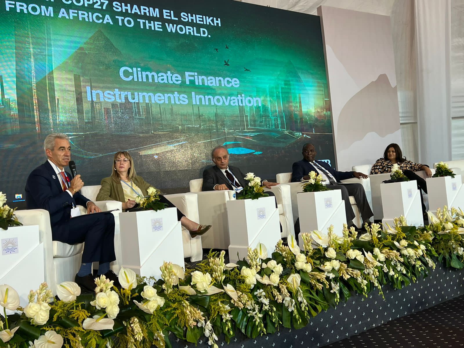 وشارك في الجلسة الأولى، التي عقدت بعنوان “رؤية ومنهج جديد ومبتكر لتمويل مشروعات التكيف مع المناخ Brain Trust”، كل من حسين أباظة الرئيس التنفيذي والعضو المنتدب بالبنك التجاري الدولي، وطلحة كريم الرئيس التنفيذي لقطاع المخاطر بالبنك التجاري الدولي، وأسامة القيسي الرئيس التنفيذي للمؤسسة الإسلامية لتأمين الاستثمار وائتمان الصادرات، وعمر سيلا المدير الإقليمي لشمال إفريقيا لمؤسسة التمويل الدولية، و الهمندو دورسوما القائم بأعمال مدير إدارة تغير المناخ والنمو الأخضر في بنك التنمية الأفريقي، وأدار الجلسة الدكتورة داليا عبد القادر رئيس قطاع التمويل المستدام بالبنك التجاري الدولي.