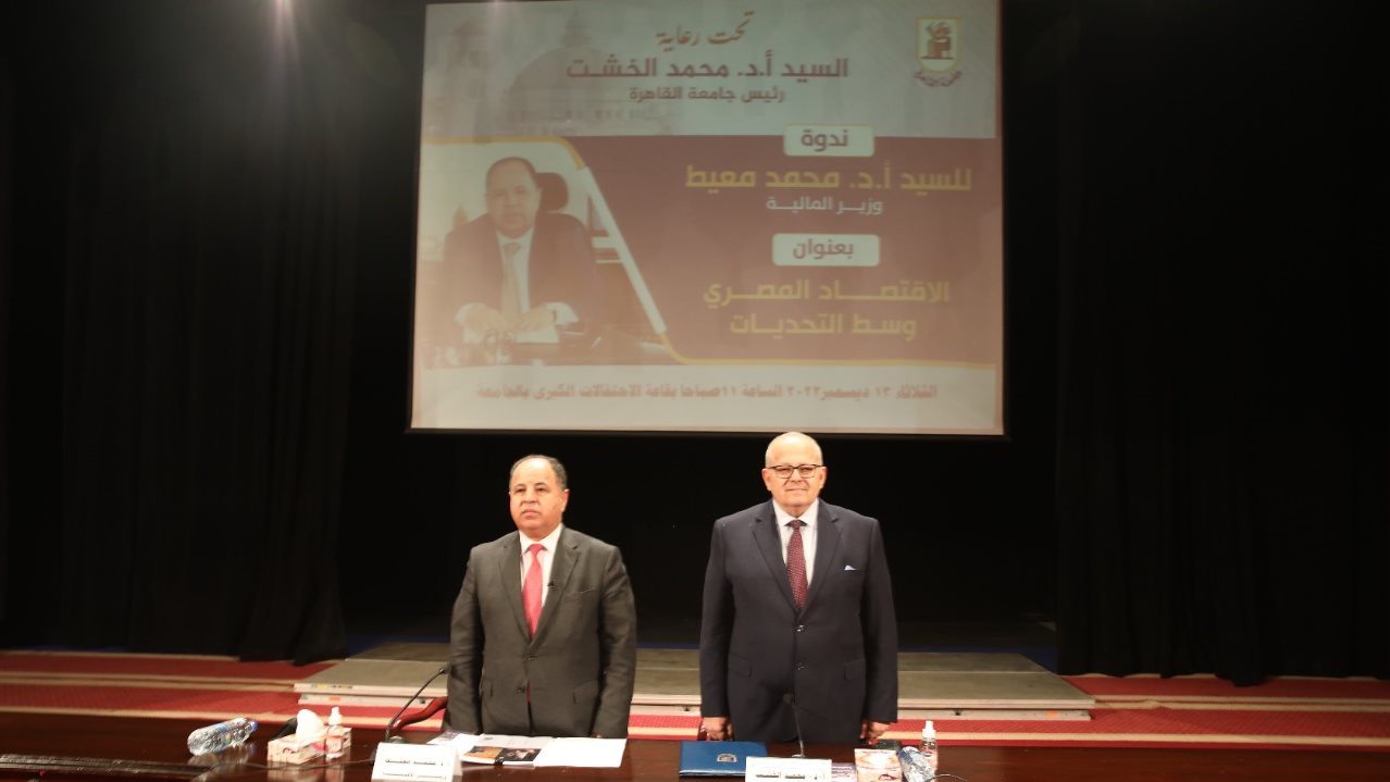 وزير المالية.. لطلاب وأساتذة وعمداء كليات جامعة القاهرة بحضور د. الخشت:
