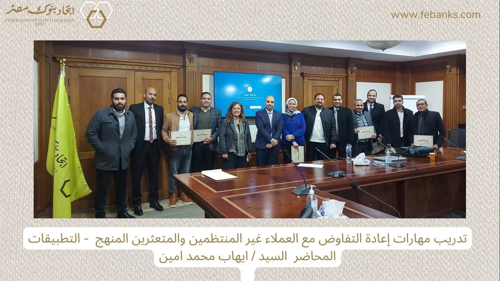 نظم اتحاد بنوك مصر برنامجا تدريبيا حول “مهارات إعادة التفاوض مع العملاء غير المنتظمين والمتعثرين”، وذلك من حيث المنهج والتطبيقات تحت قيادة الأستاذ إيهاب أمين، المشرف على وحدات معالجة الديون غير المنتظمة بالبنك الأهلي المصري.